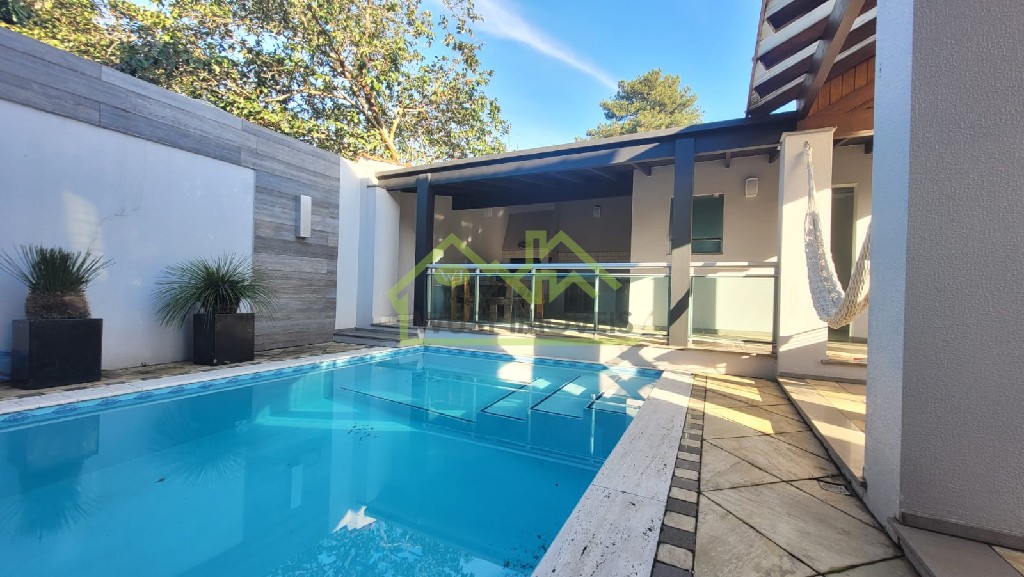 Casa de alto padrão com 330 m² privativos, conta com 3 dormitórios, sendo 1 suíte master com banheira de hidromassagem e closet, lavabo, sala de estar com lareira, sala de jantar, sala de televisão, quiosque com churrasqueira, piscina, 2 vagas de garagem coberta + 2 descobertas.Terreno: 13,20 x 30,00.