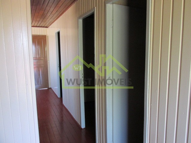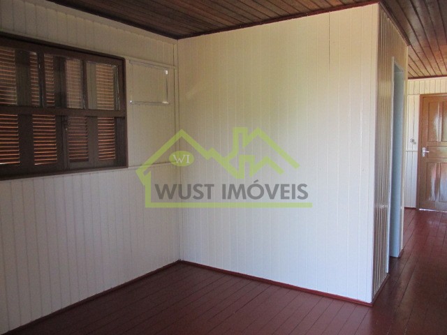 Casa de madeira com 03 dormitórios, 01 banheiro, sala, cozinha, lavanderia, sem garagem.
