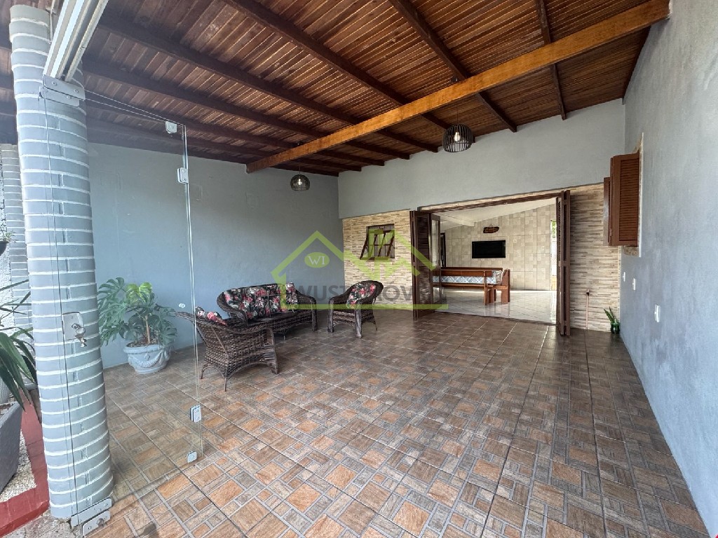 Casa de alvenaria com 151 m² de área privativa, 3 dormitórios, banheiro social, sala de estar e sala de jantar com churrasqueira, cozinha, área de serviço, garagem fechada e pátio amplo e cercado na frente e fundos.Terreno: 15,00 x 24,60.