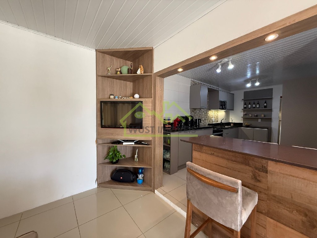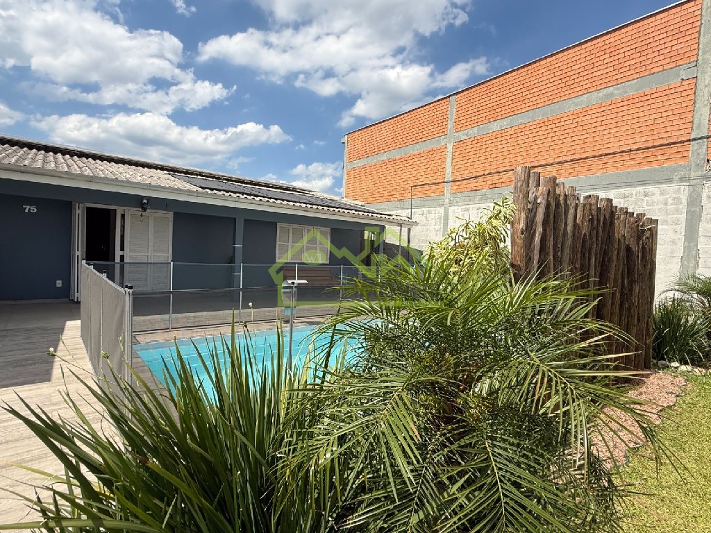 Trata-se de uma linda casa em alvenaria com aproximadamente 80m², 02 dormitórios, 01 banheiro, sala, cozinha, lavanderia, vaga de garagem coberta. Fica cozinha sob medida.Piscina com aquecimento e energia solar.