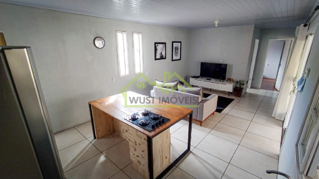Casa de madeira com 85 m², 3 dormitórios, baneiro, sala de estar/jantar, cozinha, área de serviço. Casa nos fundos de alvenaria com 60 m², 2 dormitórios, banheiro, sala de estar/jantar, cozinha, área de serviço.Detalhes do Imóvel