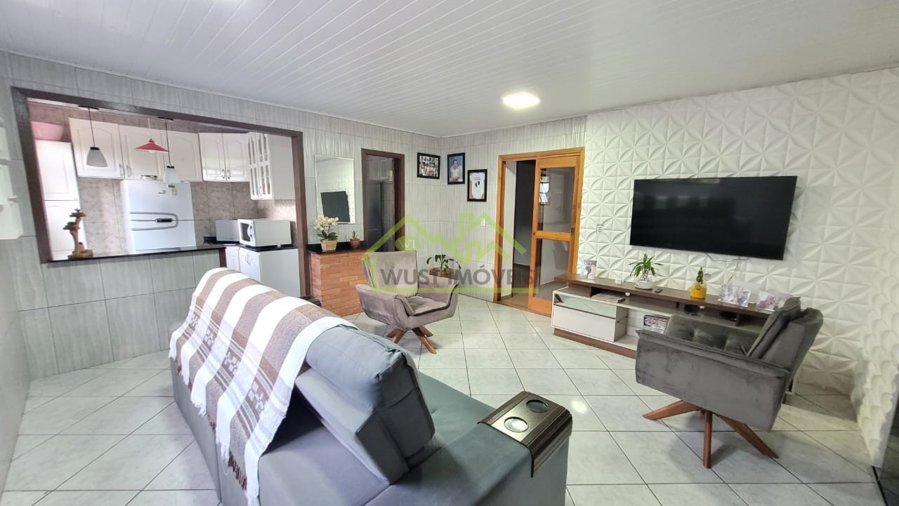 Casa de alvenaria com 151 m² de área privativa, 3 dormitórios, banheiro social, sala de estar e sala de jantar com churrasqueira, cozinha, área de serviço, garagem fechada e pátio amplo e cercado na frente e fundos.Terreno: 15,00 x 24,60.